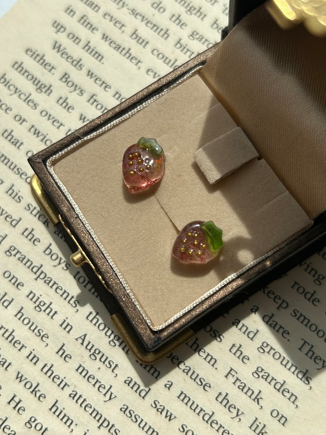 ■ストロベリークォーツ小粒いちご耳飾り ほんのり赤く透ける天然石「ストロベリークォーツ」を使い、甘酸っぱい愛らしい小粒のいちごをモチーフにした耳飾りです。 ストロベリークォーツのキラキラの内包物が光を受けて、キラリと輝く果実のような石。 外側には、金色の“種”をちりばめられて、まるで本物のいちごのような愛らしさで柔らかい印象を与えてくれます。 グリーンの葉部分も丁寧にあしらい、ナチュラルでやさしい印象に仕上げました。 可愛らしさの中にも上品さを感じられる、春夏にぴったりのアクセサリーです。 カジュアルな装いのアクセントにも、ちょっとしたお出かけにもおすすめ。 サイズ:いちご約10×8mm 素材:ストロベリークォーツ、レジン ピアス→サージカルステンレススタッド イヤリング→樹脂ノンホールピアス (ネジバネなど他のパーツに変更される方は備考へご記入ください。) 火気や水気は避けてください。使用後は汗や皮脂を拭き取り、直射日光や高温を避けて保管してください。 この耳飾りは、一つ一つ手作りで仕上げており、個々に異なる魅力があります。 ※商品説明、ショップ情報を合わせて一読の上ご購入くださいますよう宜しくお願い致します。