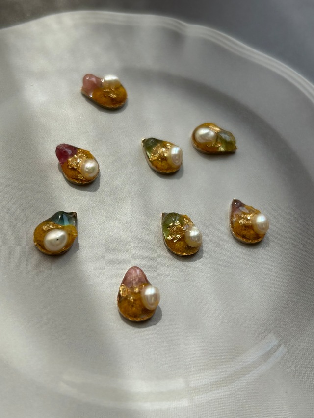 ■小さな宝石ミモザ押花トルマリン 雫型の金枠にミモザの押花とトルマリン、パールを詰めた小さな耳飾りです。 ミモザのやさしい黄色とトルマリンのカラフルな透明感が絶妙に組み合わさった可愛らしさが魅力です。 パールがアクセントとなり、上品さを引き立てます。 控えめながらもしっかりと存在感があり、おしゃれのアクセントとしても最適です。 サイズ:全長約11×8mm 素材:トルマリン、ミモザ押花、パール ピンクとグリーン、ピンクとブルーのペアになります。 ピアス:サージカルステンレススタッド イヤリング:樹脂ノンホールピアス 火気や水気は避けてください。使用後は汗や皮脂を拭き取り、直射日光や高温を避けて保管してください。 この小さな宝石は一つ一つ手作りで仕上げており、それぞれに異なる魅力があります。 ご注文後に金具を付けさせて頂きます。 ※商品説明、ショップ情報を合わせて一読の上ご購入くださいますよう宜しくお願い致します。