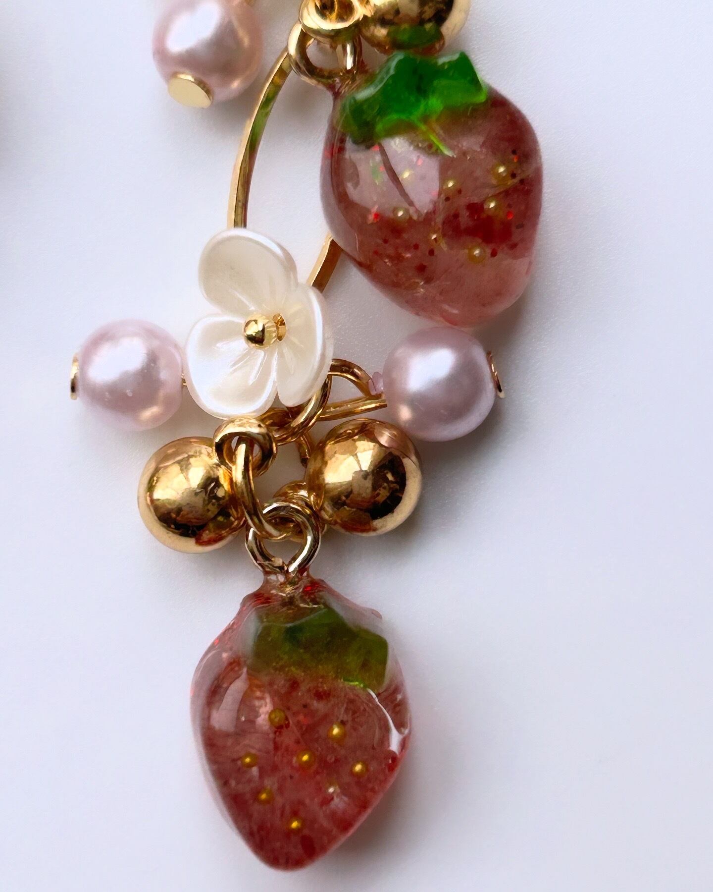 甘く熟れた小粒いちごを思わせる、ストロベリークォーツのチャーム主役のが愛らしいいちごデザインキーホルダー