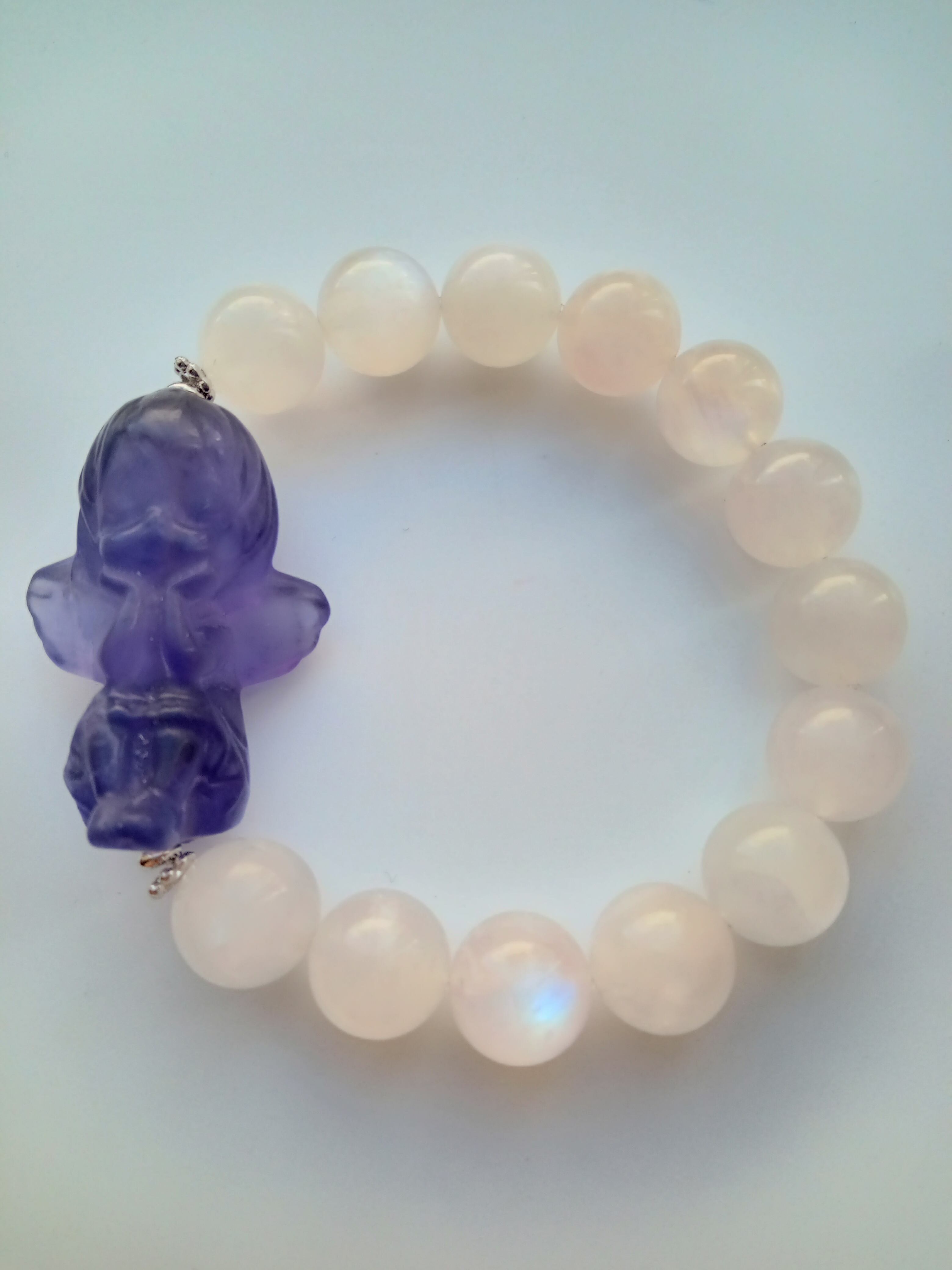 月のエネルギーを受容し、持つ人の生理的な周期や情緒面に影響を及ぼし、流れやリズムを整えてくれると言われています。 また、女性性を強く象徴する石で、男性であっても、女性的な柔らかい感受性を高められると言われます。