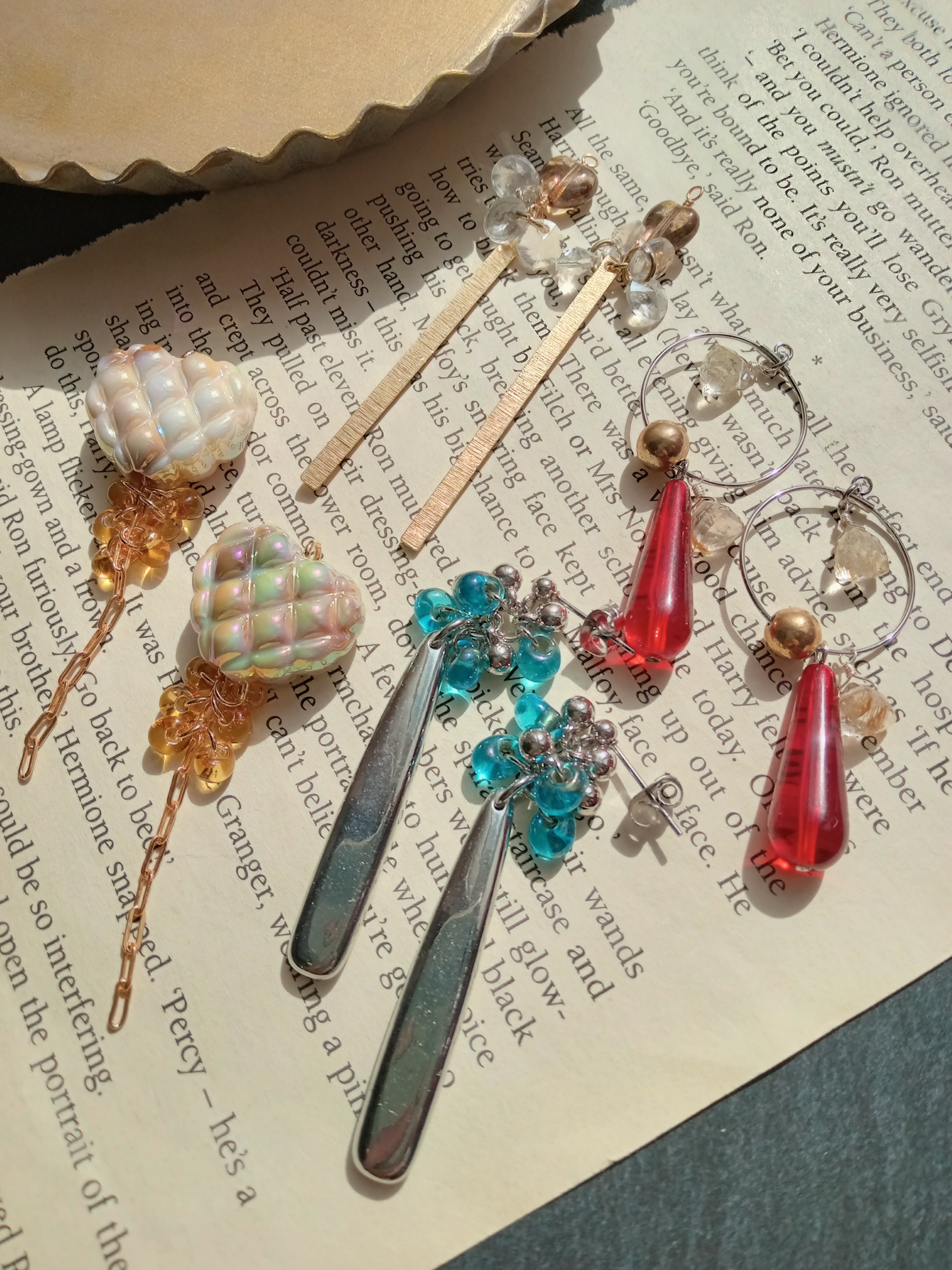 レッドドロップとゴールドビーズがヴィンテージを使用しており、レトロ感があり素敵です。