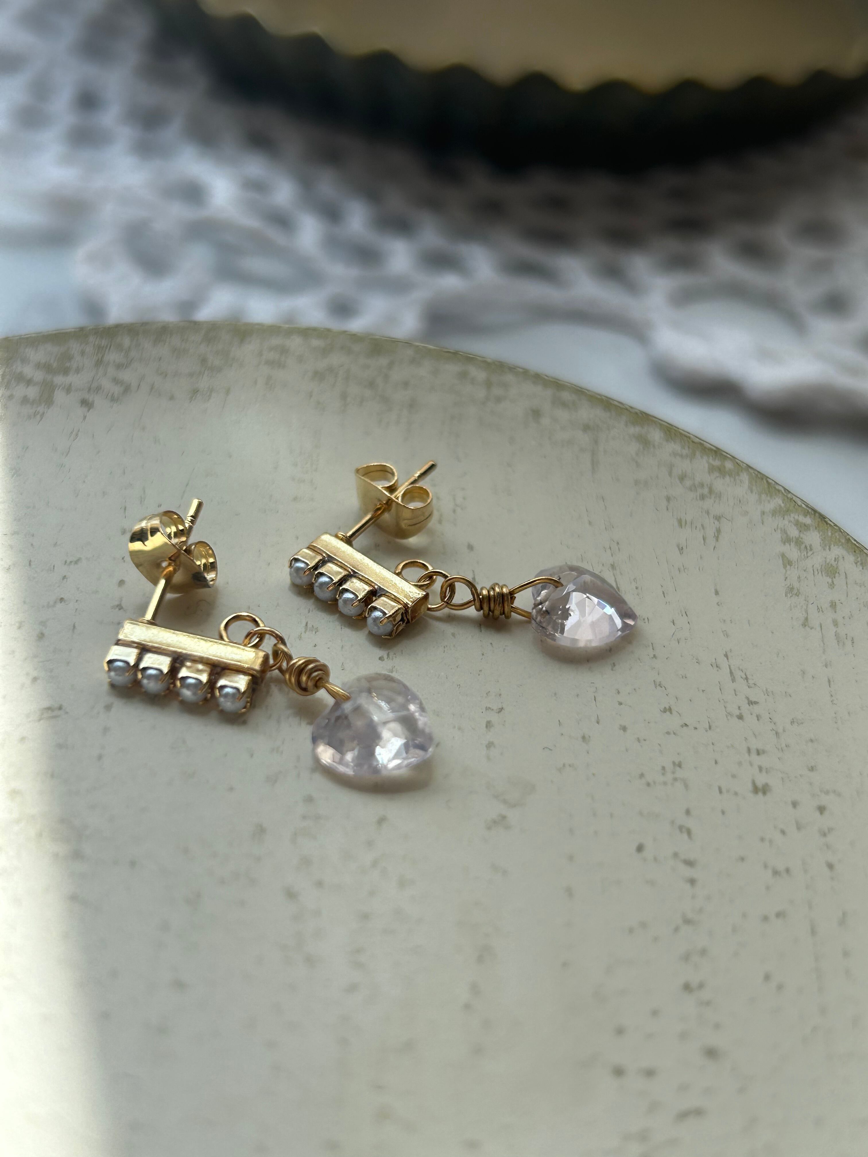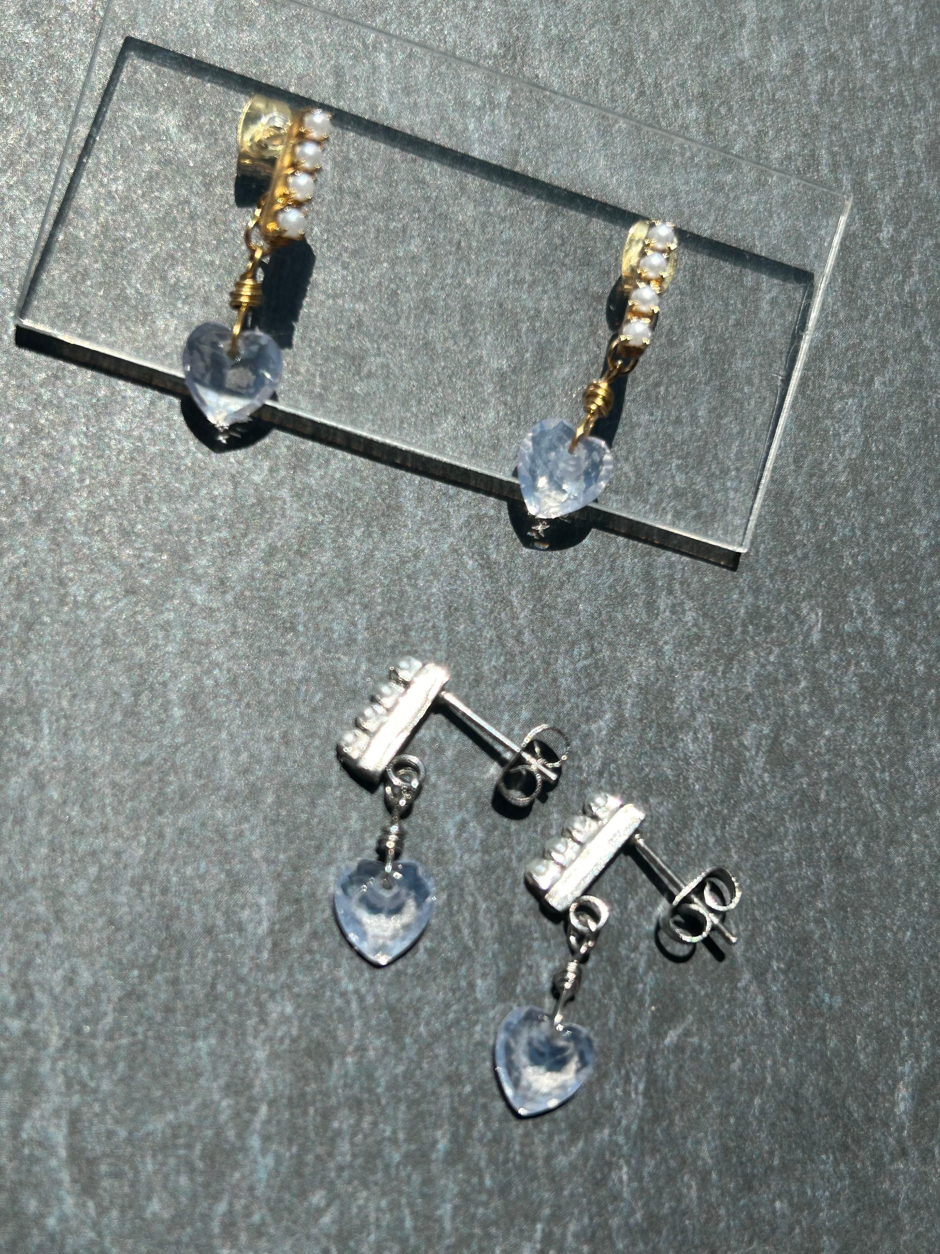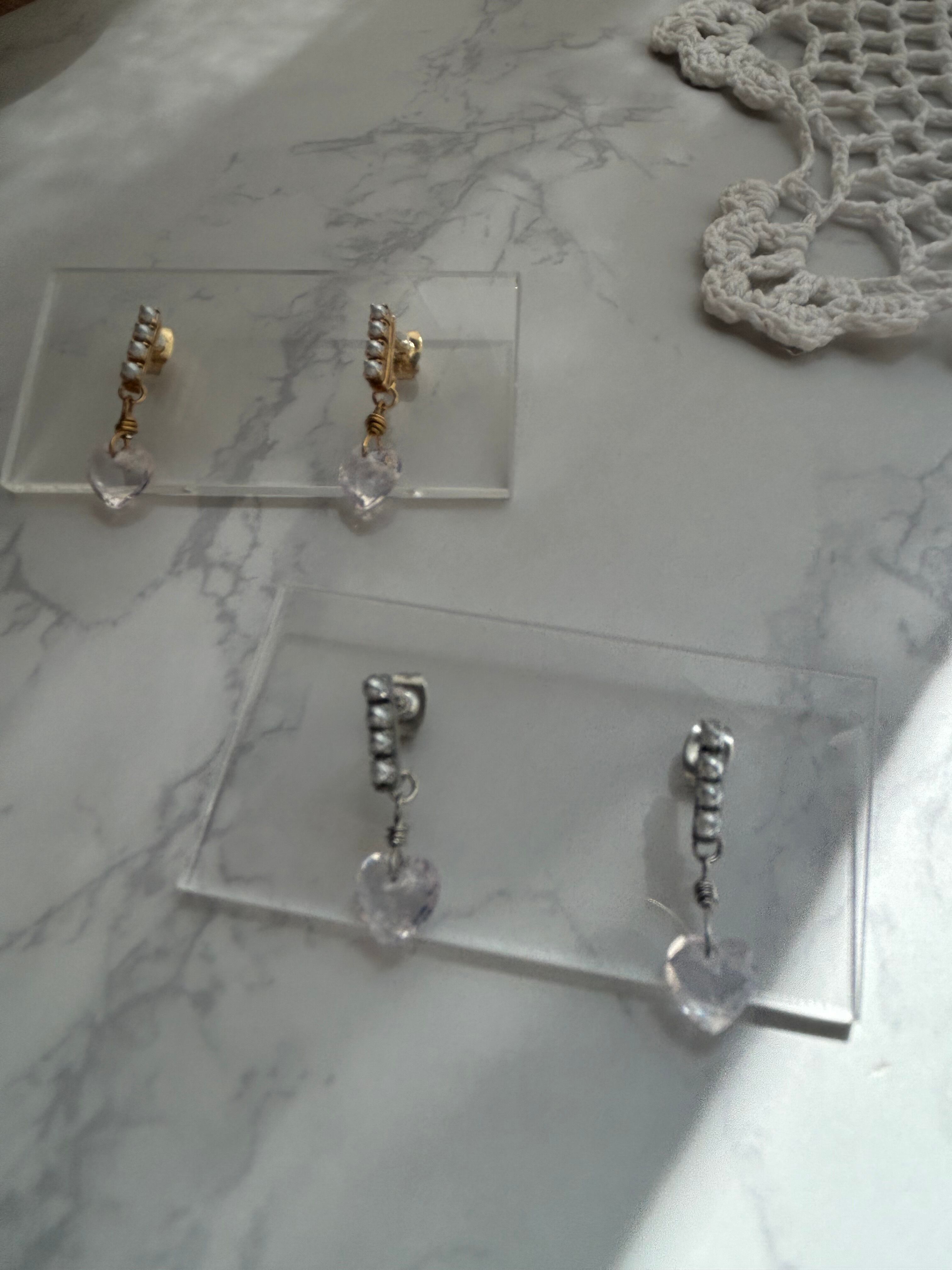 ハートで細かいカットで輝きが魅力のスコロライトパールピアス。