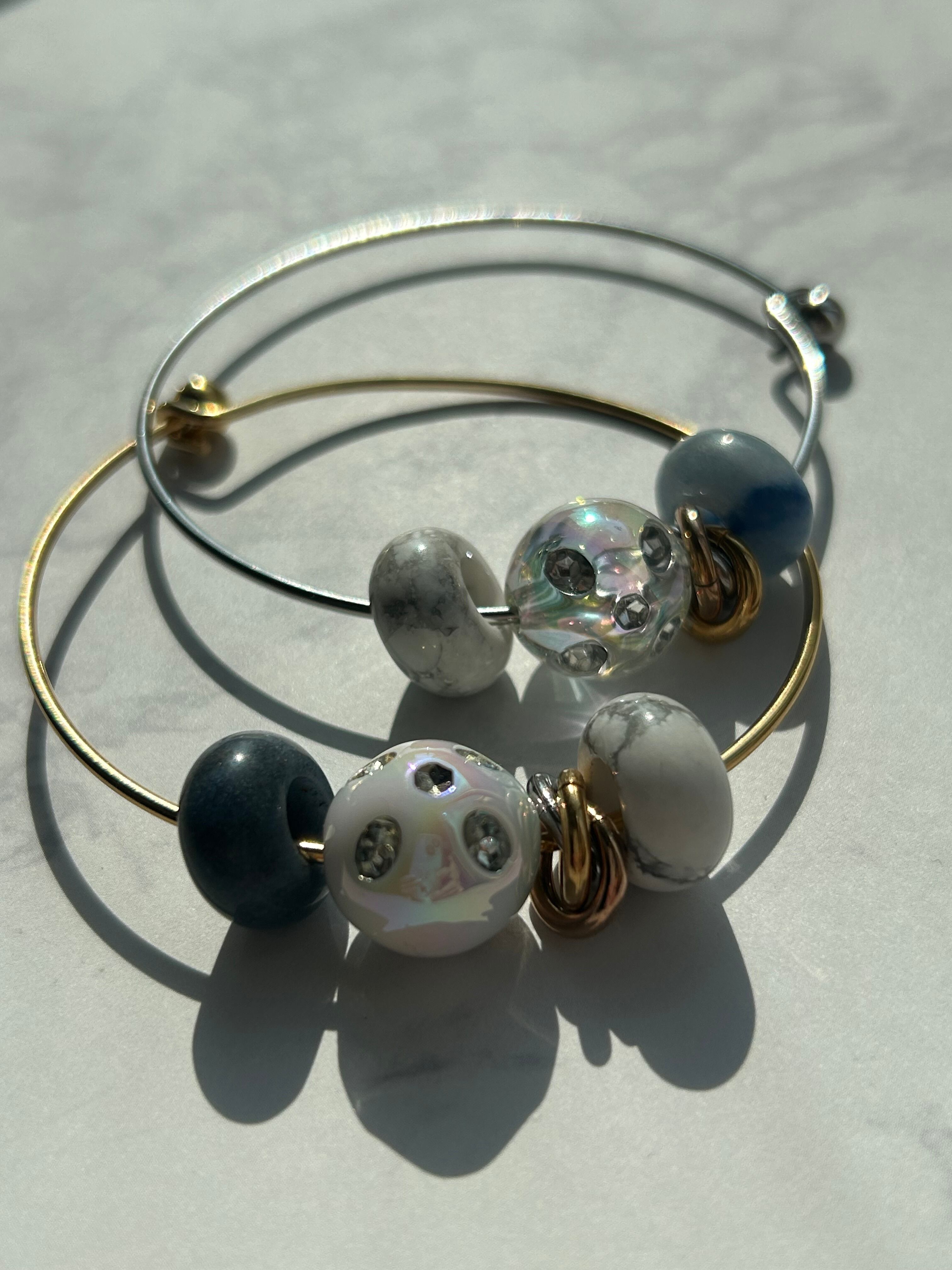 スタイリッシュなデザインに、天然石のパワーが輝くステンレスバングル。