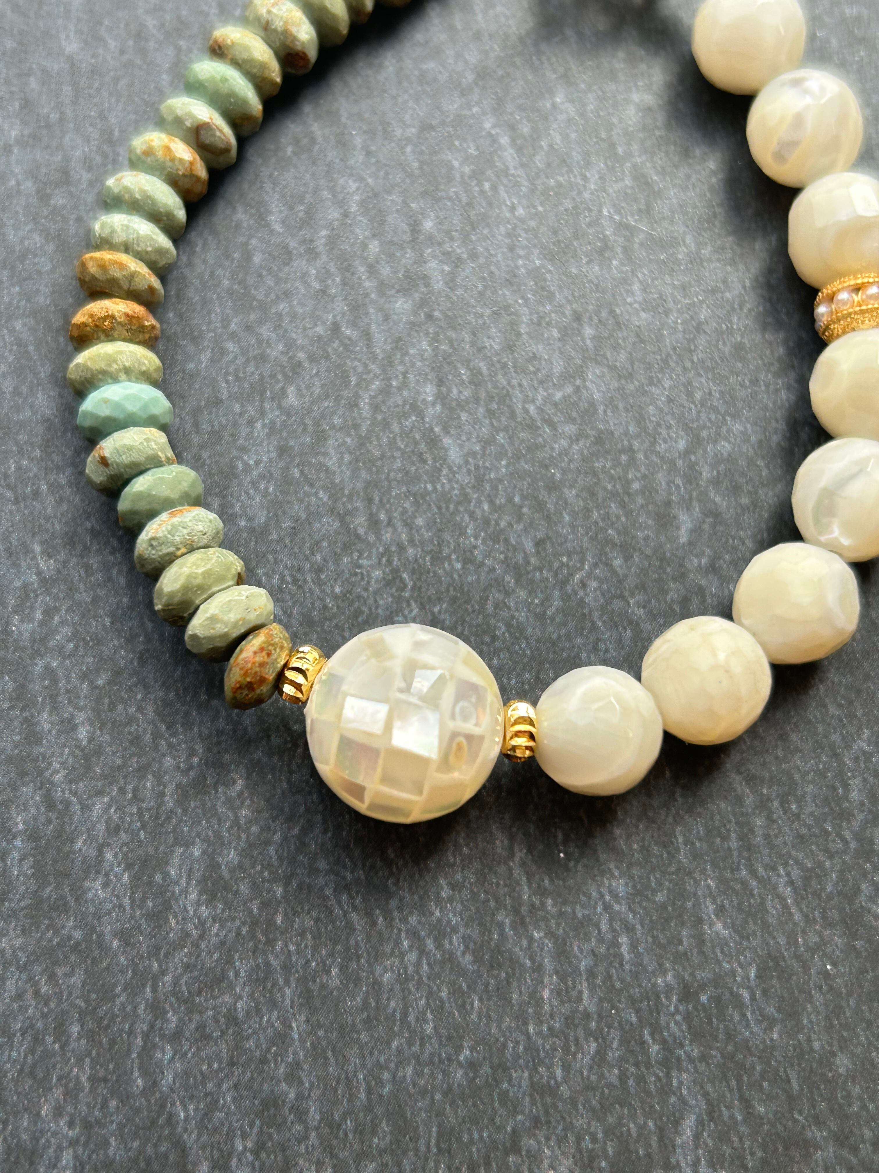 ターコイズとマザーオパールマンテルブレス