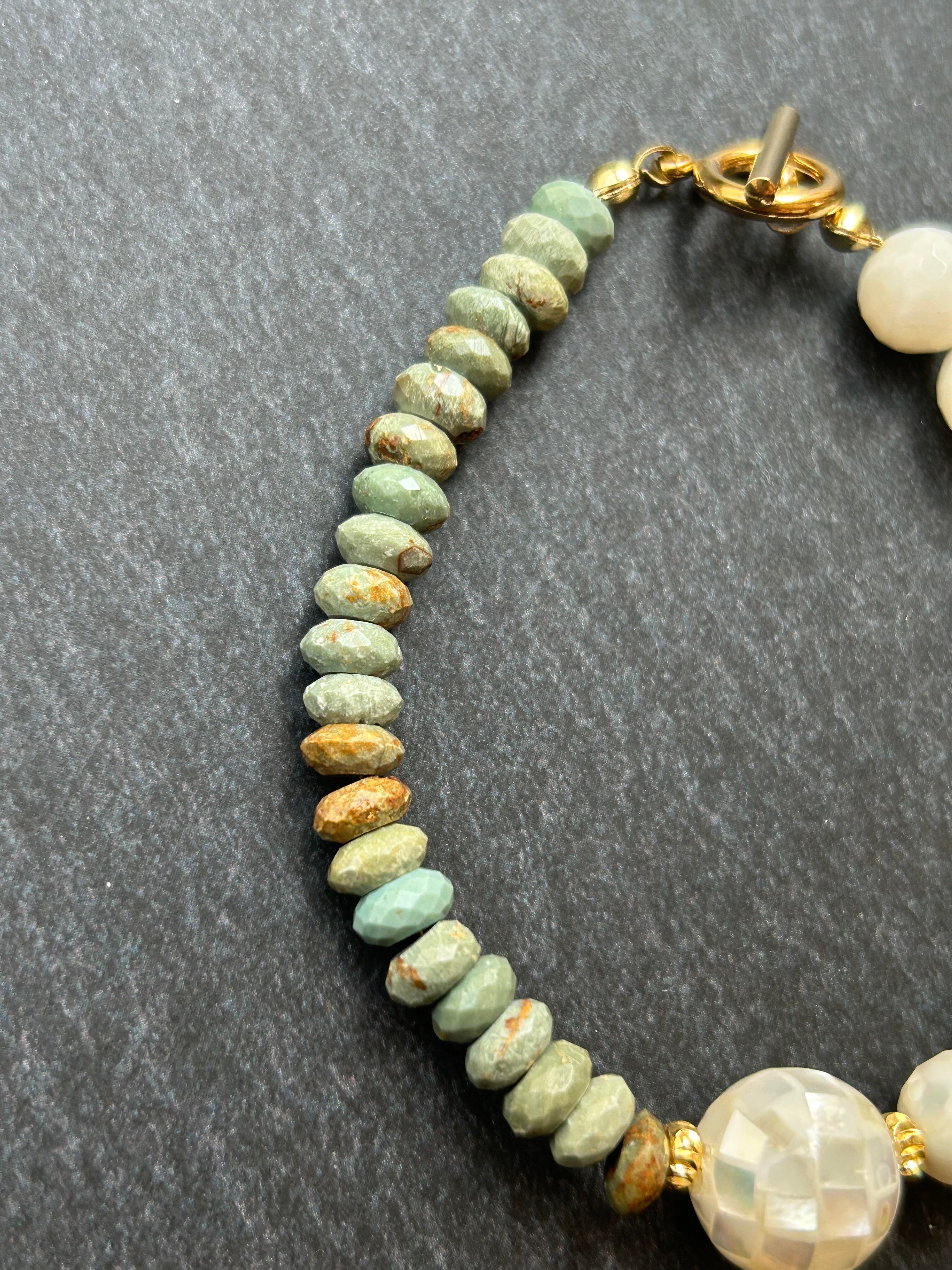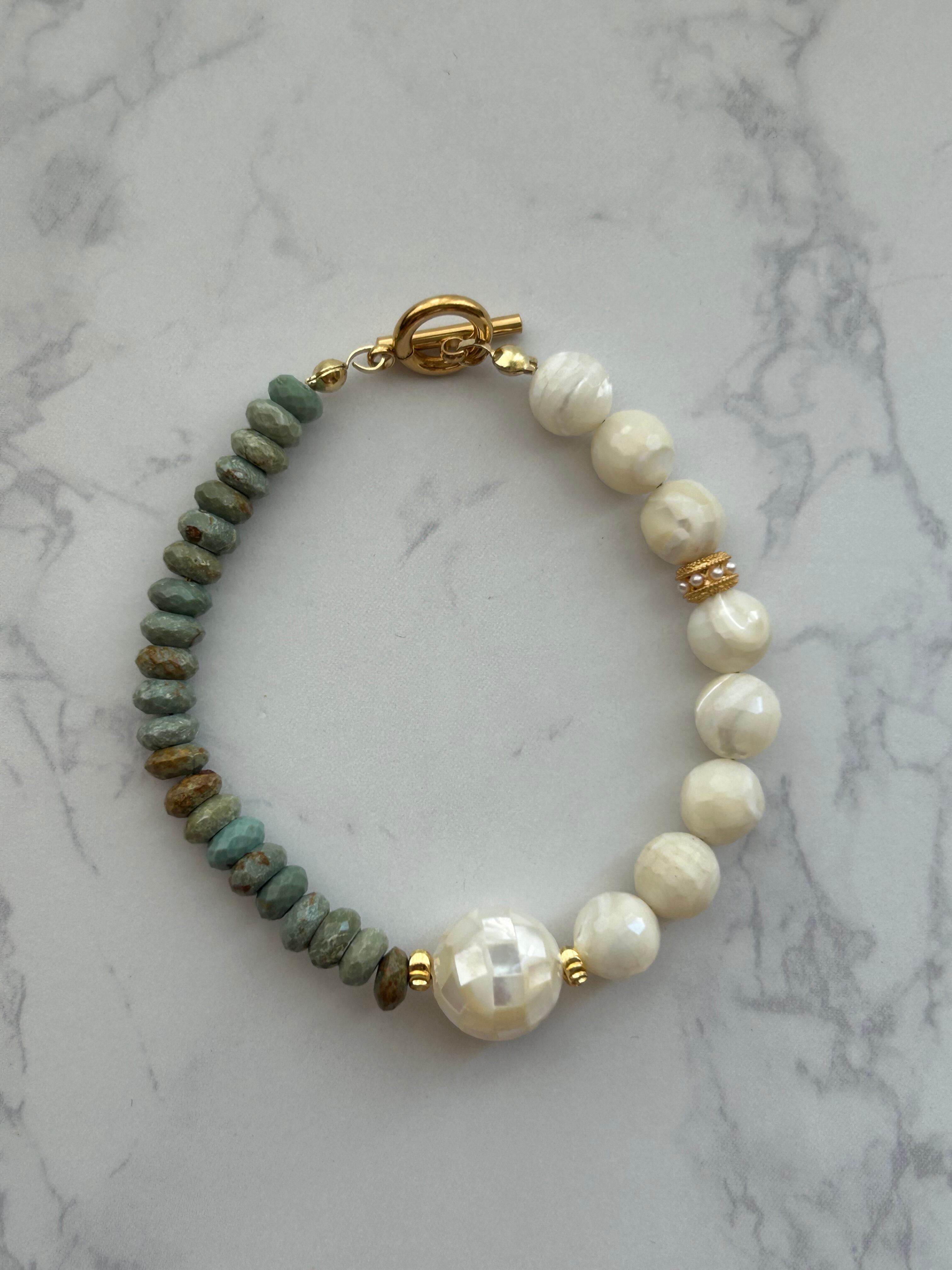 珍しい組み合わせのターコイズとマザーオパールが美しいブレスレット。