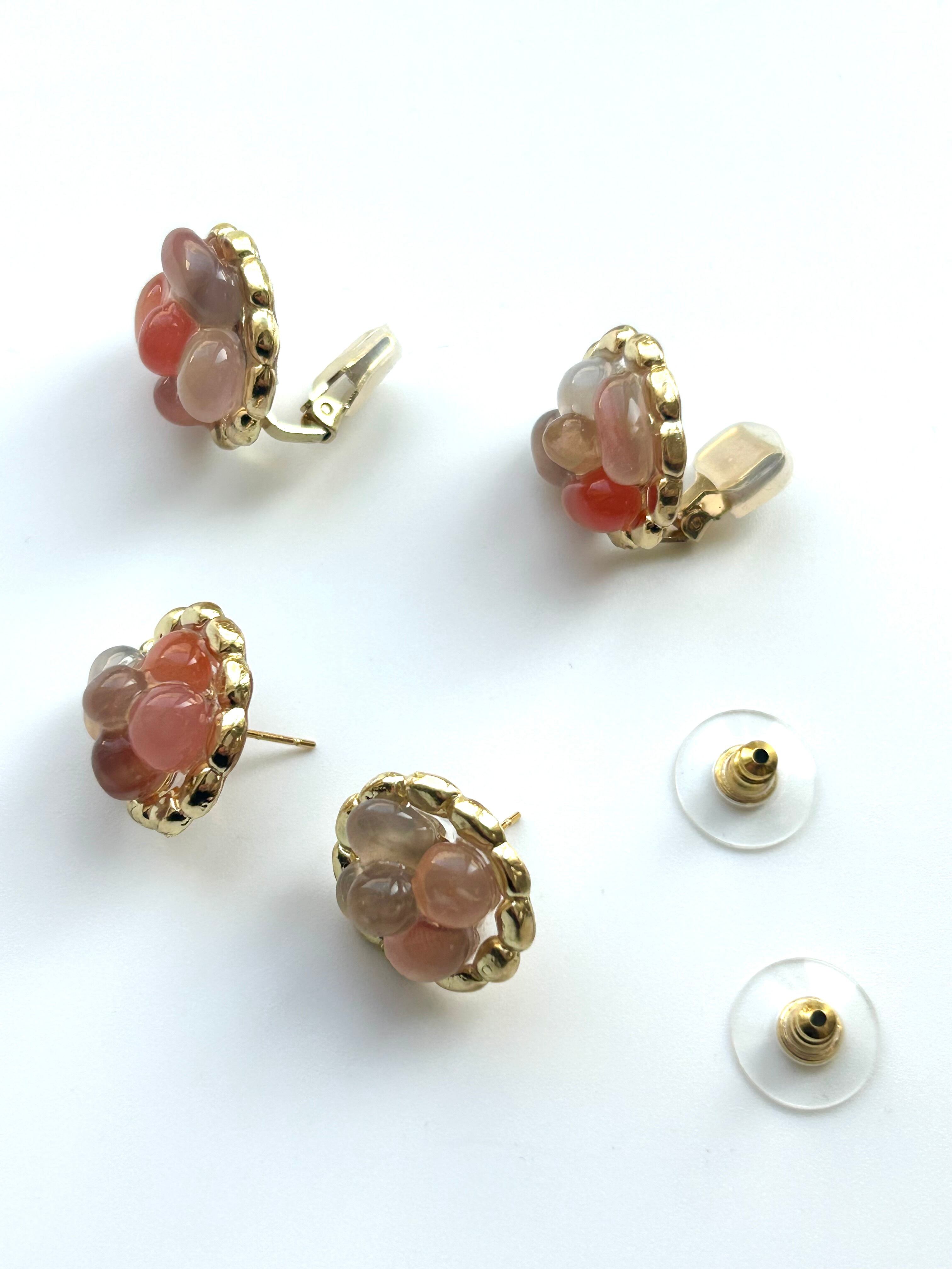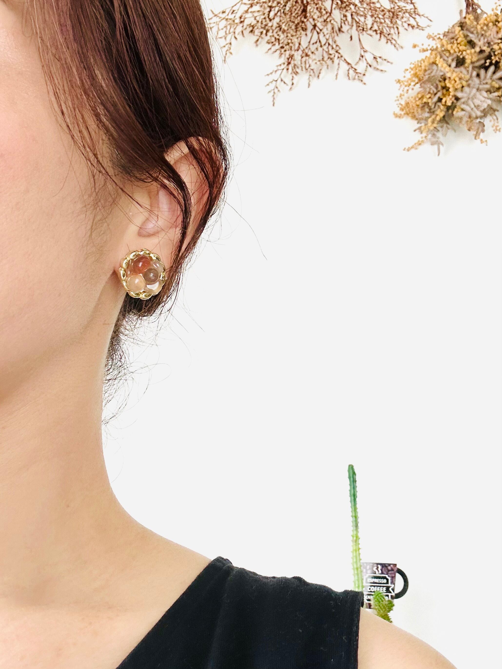 瑪瑙石をレジンで閉じ込めた、耳飾り。