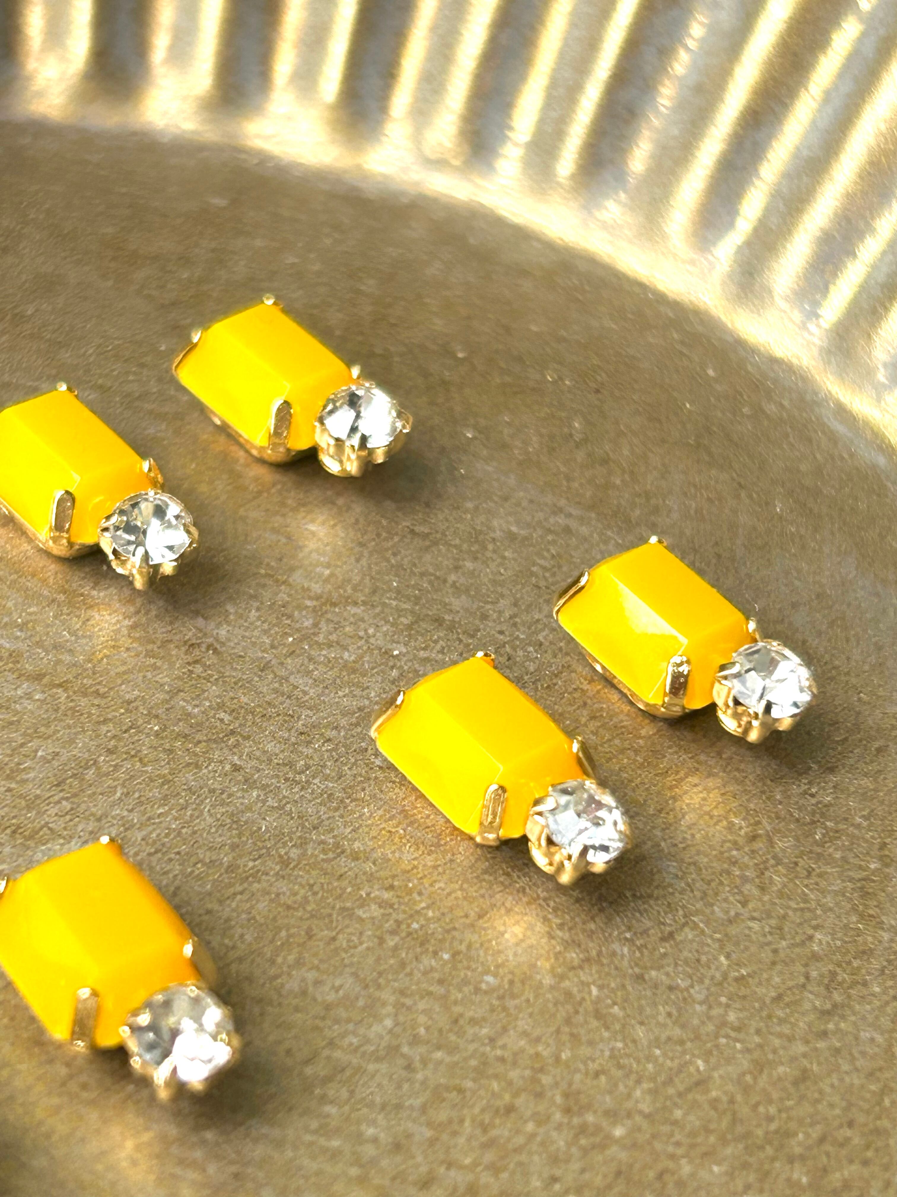 マスタードカラーのキラキラクリスタルビジューをあしらった、魅力的なアクセサリー。