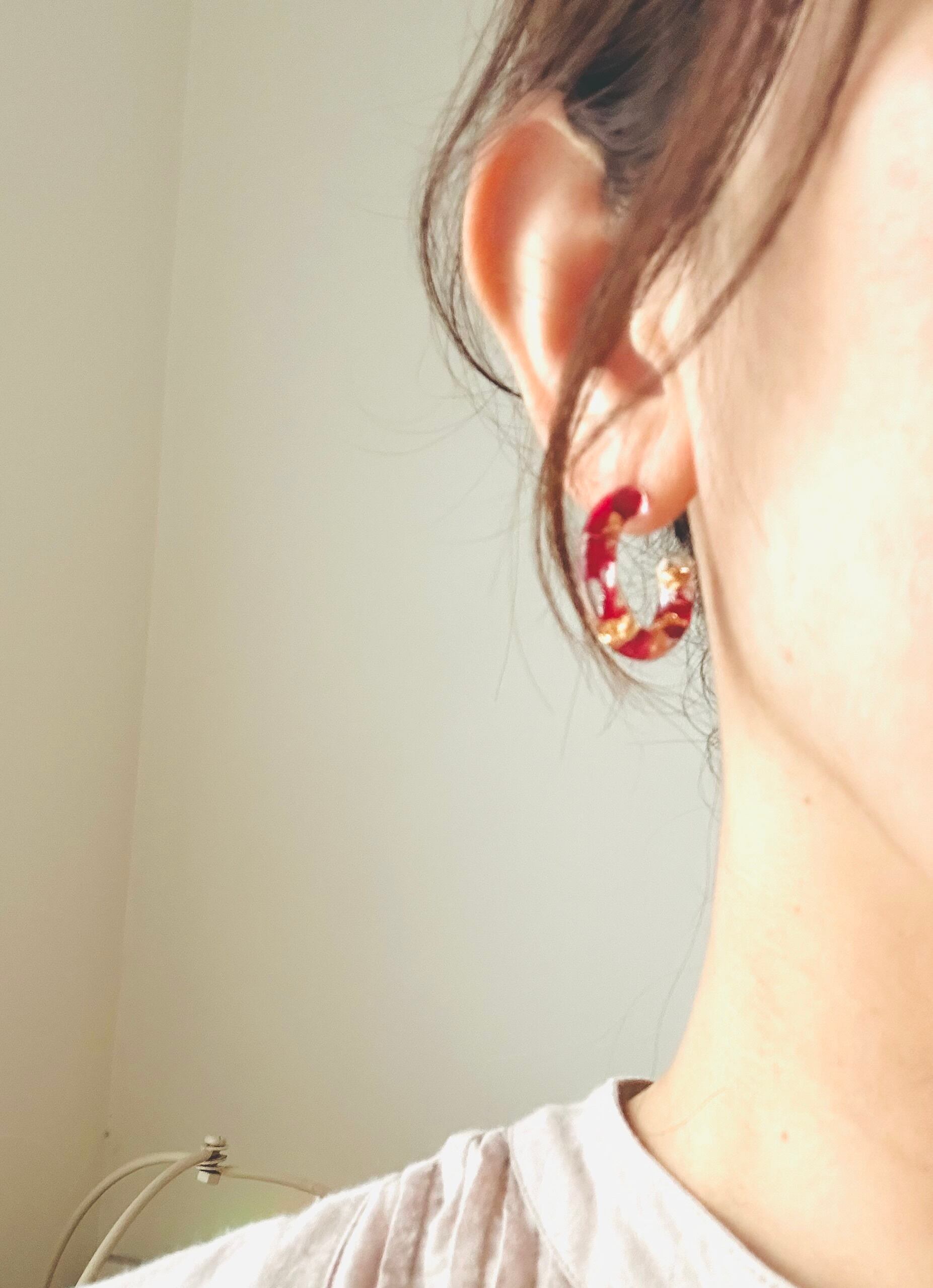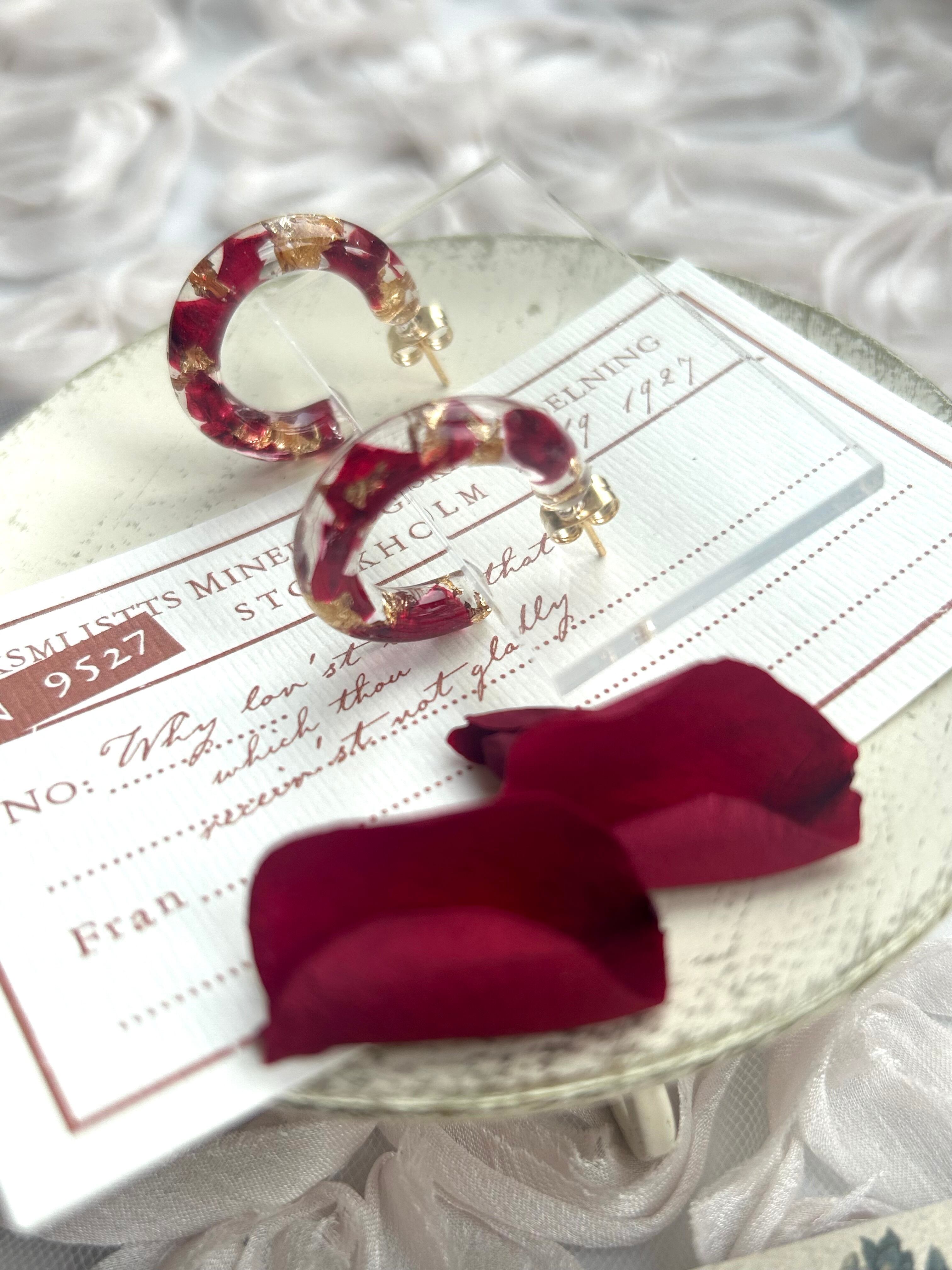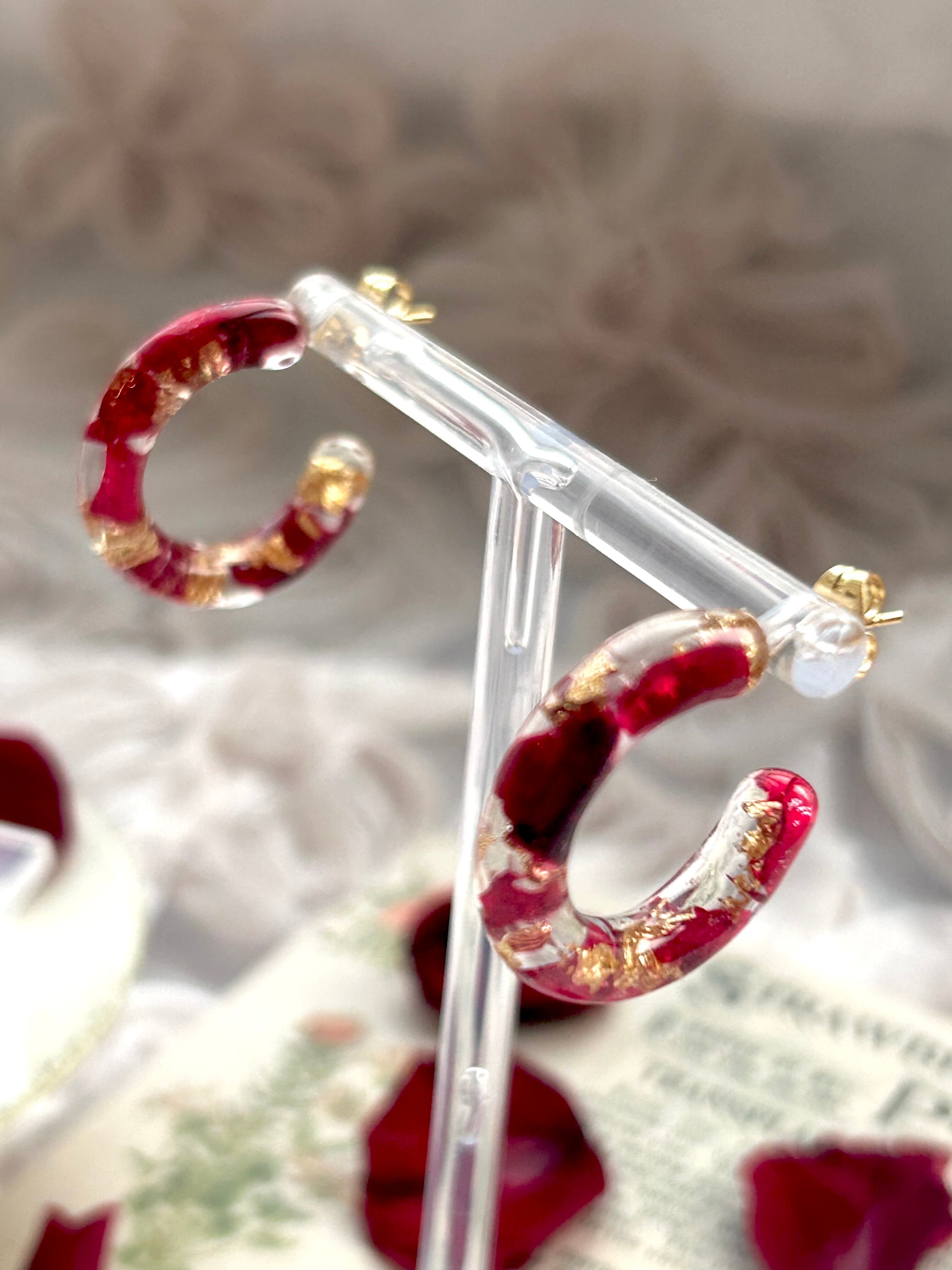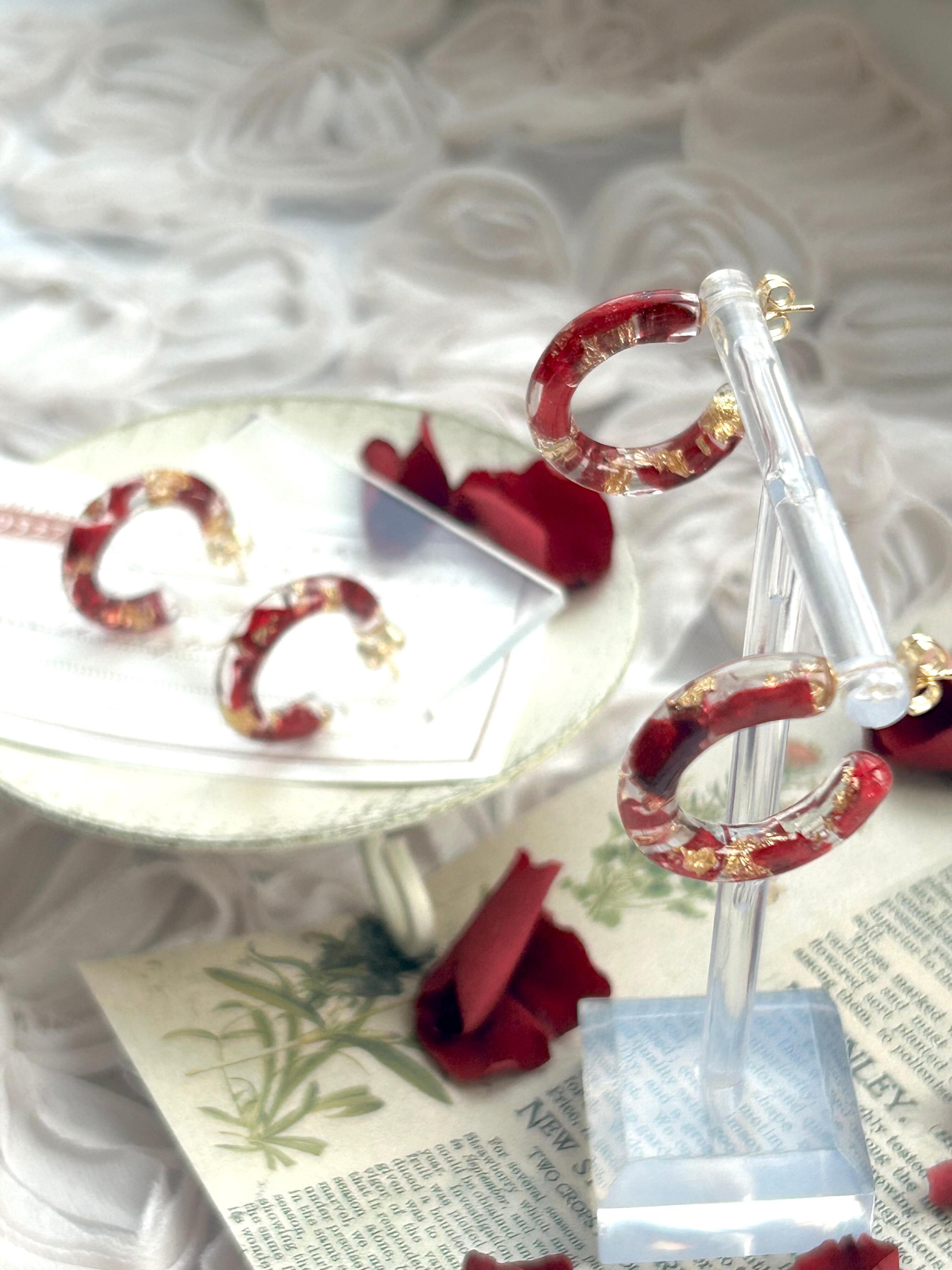 情熱的な赤とエレガントなゴールドの組み合わせが美しい、薔薇のスリムフープピアスの登場です。