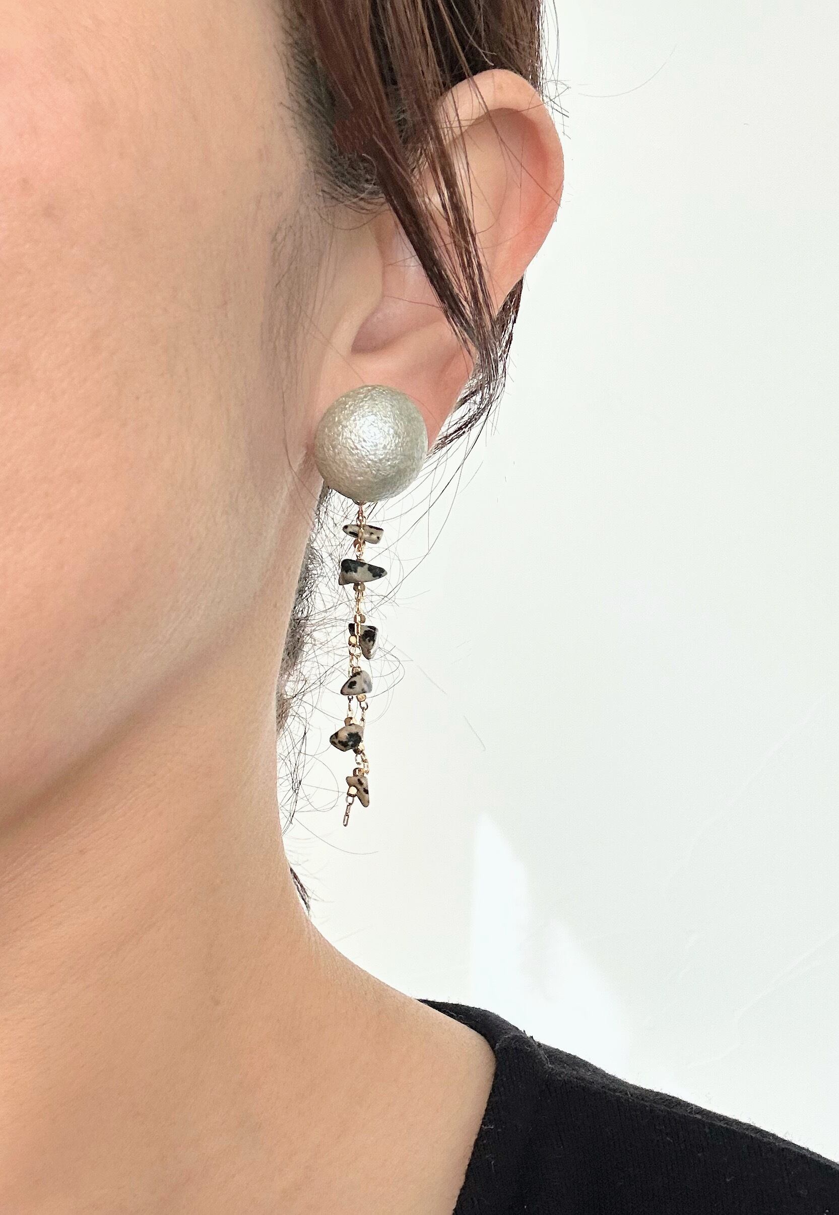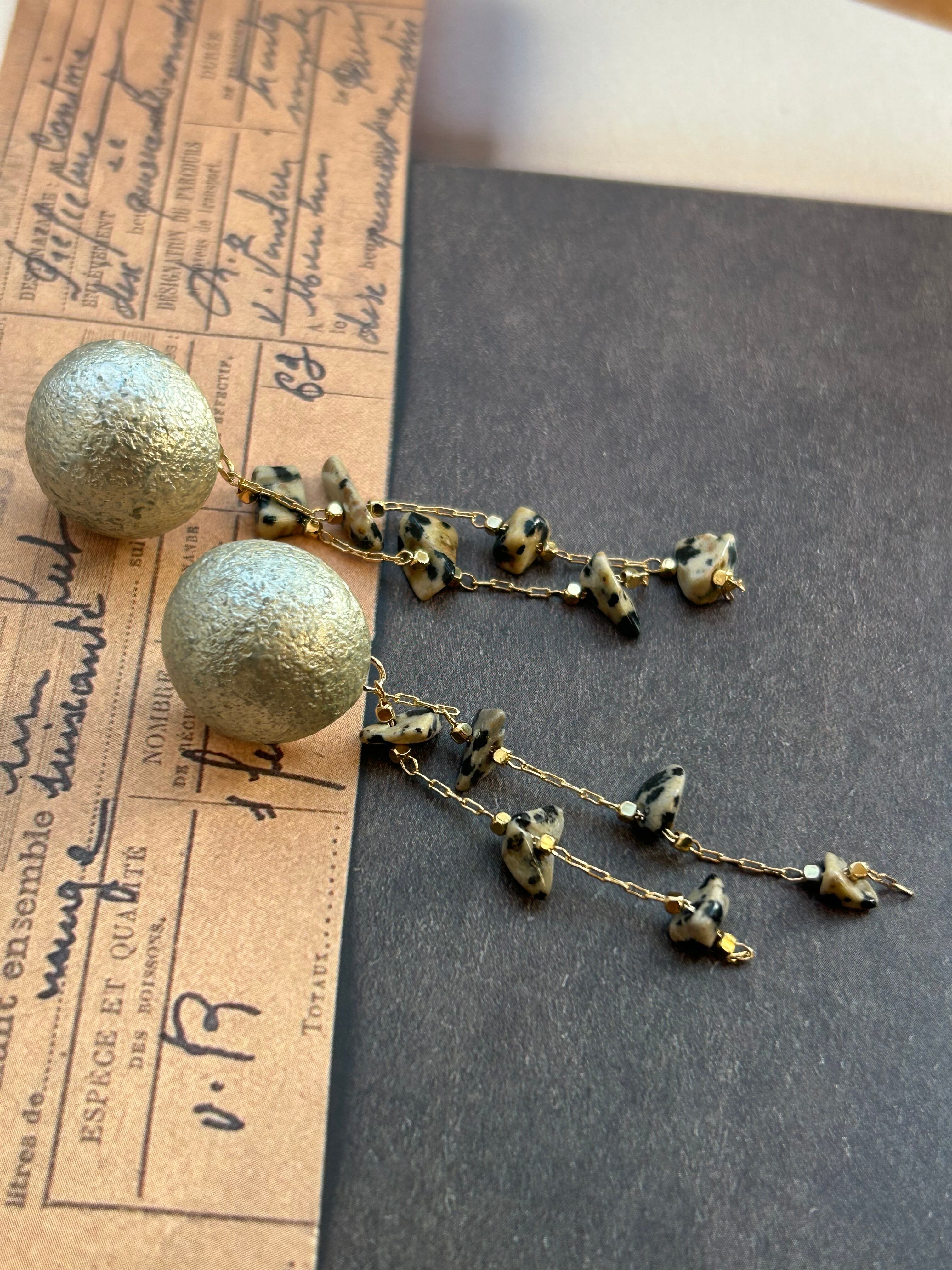 ■ヴィンテージカボションとダルメシアンジャスパーチェーンの耳飾り